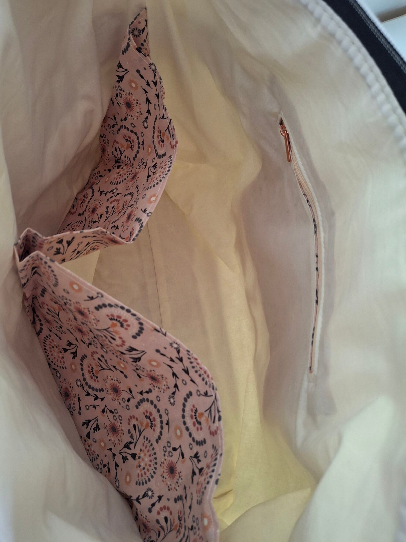 Intérieur coton, trois poches dont une zippé