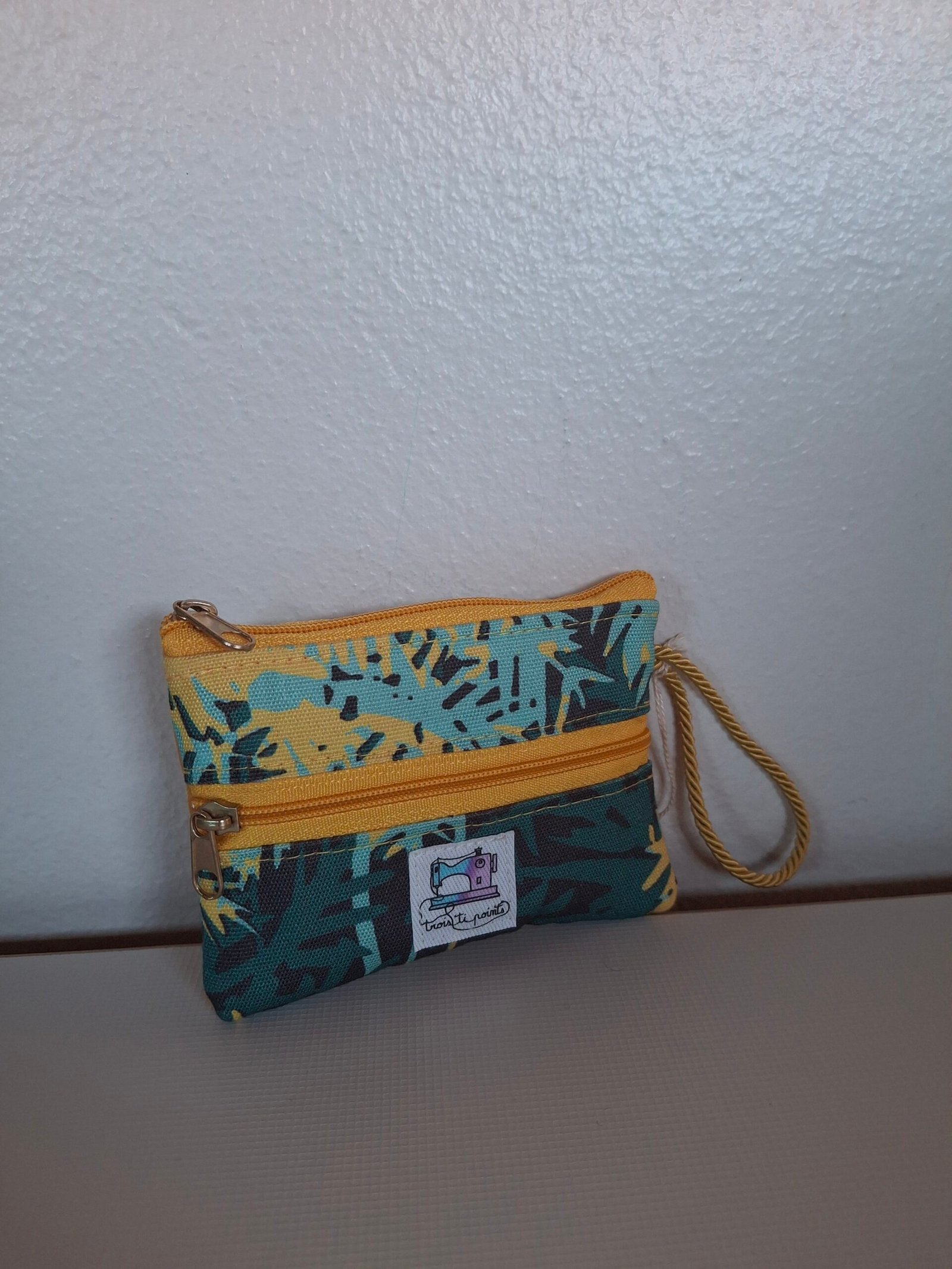 Petit porte monnaie double zip Extérieur simili cuir et tissu d’ameublement, intérieur tissu coton Dimension: 12cm/9cm